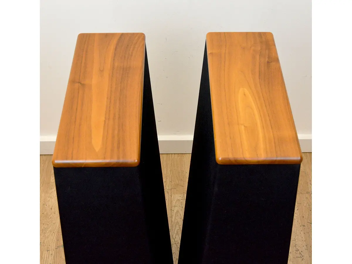 Il modulo dei bassi può essere calibrato con precisione grazie ai controlli di livello, contour e a undici bande di equalizzazione, permettendo di adattare la risposta in bassa frequenza alle caratteristiche della stanza e alle preferenze personali dell’ascoltatore. La sezione dedicata alle frequenze medio-basse impiega un altoparlante da 16,5 cm costruito con un materiale composito proprietario, mentre il midrange da 900 Hz a 5 kHz utilizza un particolare disegno curvilineo che riduce le riflessioni interne e migliora la chiarezza dei transitori. Il tweeter, direttamente derivato da quello delle 5A, è un’unità da 25 mm in alluminio rivestito in ceramica, capace di estendersi oltre i 30 kHz e di offrire un suono arioso, trasparente e ricco di microdettagli.