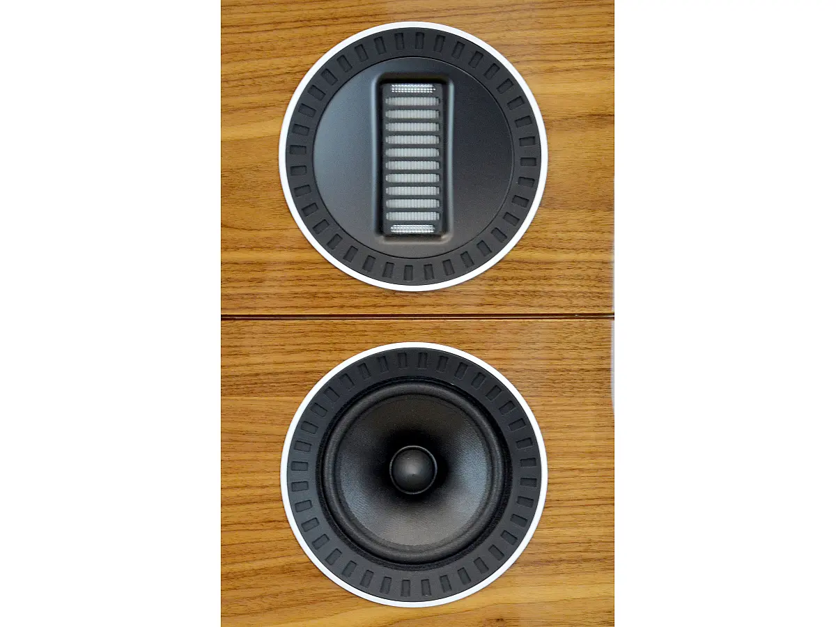 Il cuore della riproduzione sonora è rappresentato dal trasduttore ad alta frequenza AMT (Air Motion Transformer), una tecnologia radicalmente diversa dai tweeter tradizionali. Un diaframma leggerissimo e pieghettato si contrae e si espande con estrema rapidità, spingendo l’aria con eccezionale precisione e velocità. Questo tipo di trasduttore, essendo un dispositivo a velocità e non a pressione, è in grado di generare transienti fulminei e dinamiche brillanti, con un livello di dettaglio musicale semplicemente mozzafiato.