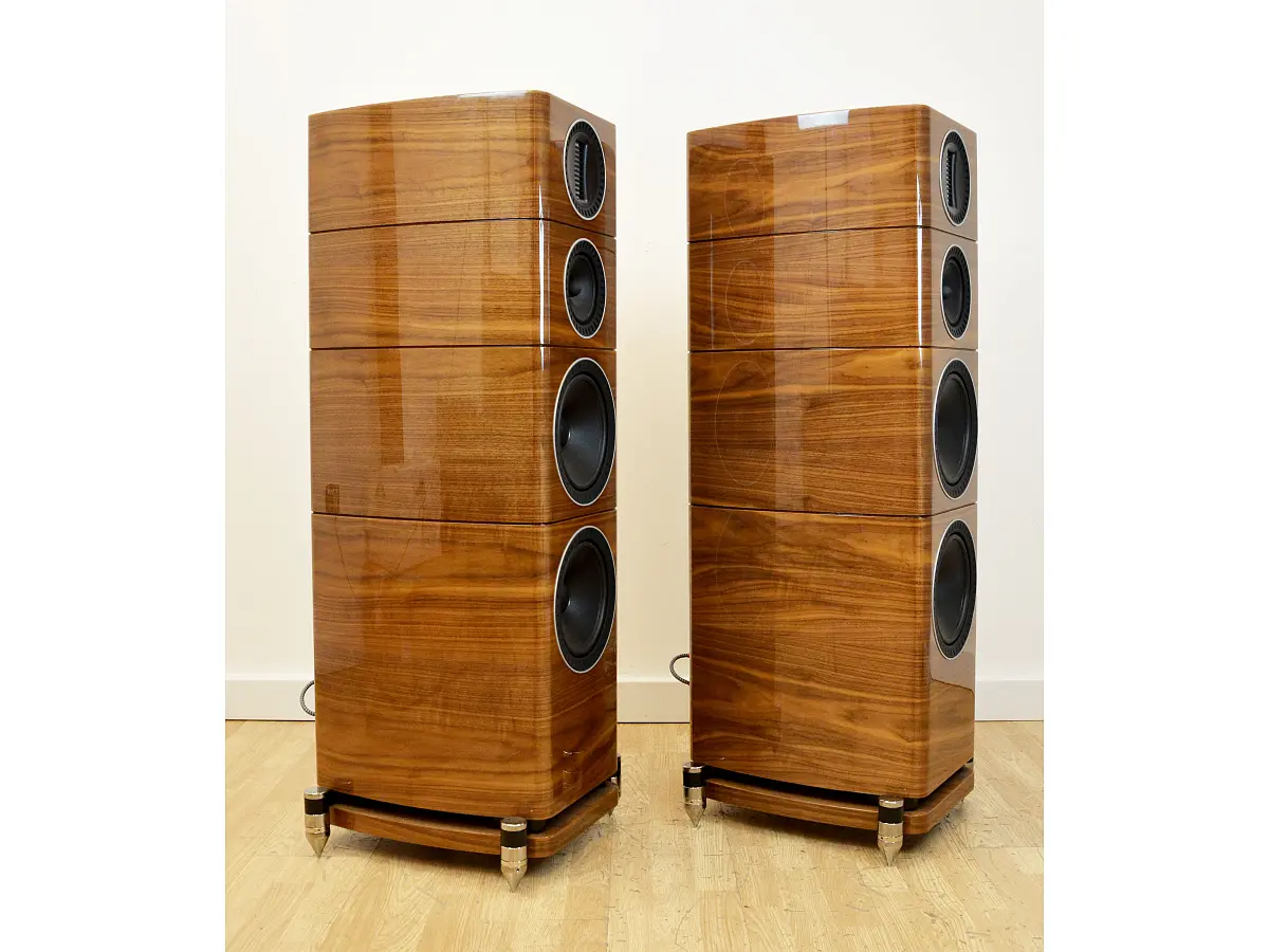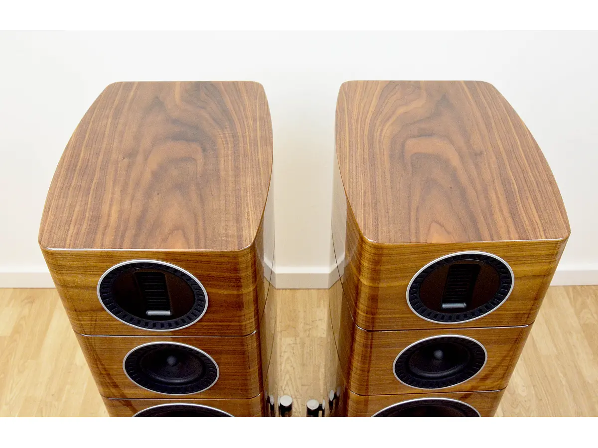 Tutti i driver sono integrati tramite un crossover modellato al computer e perfezionato con centinaia di ore di ascolto. Le pendenze sono studiate per ciascun driver e ottimizzate secondo le caratteristiche Linkwitz-Riley, assicurando una fusione perfetta tra le diverse gamme di frequenza. È particolarmente notevole la coerenza di fase, che permette una scena sonora stabile anche da posizioni d’ascolto decentrate, con una risposta in potenza omogenea in tutto l’ambiente.