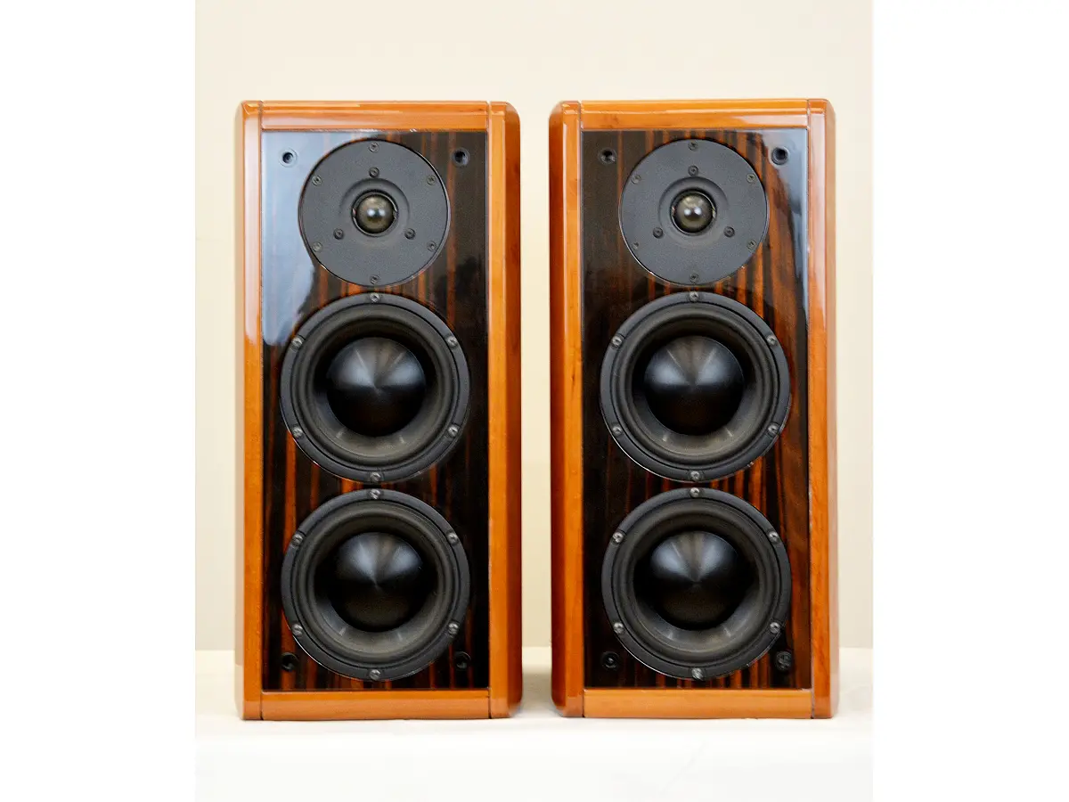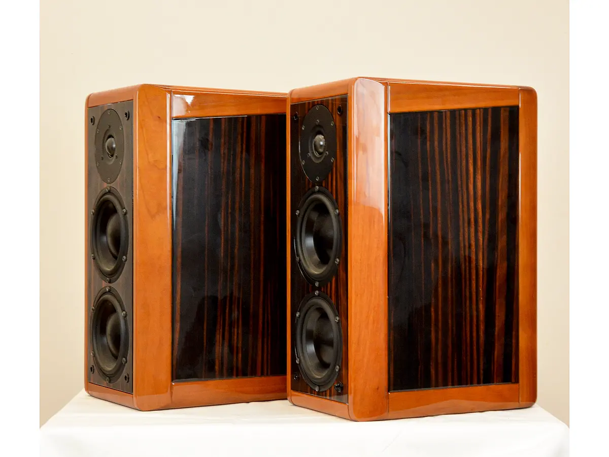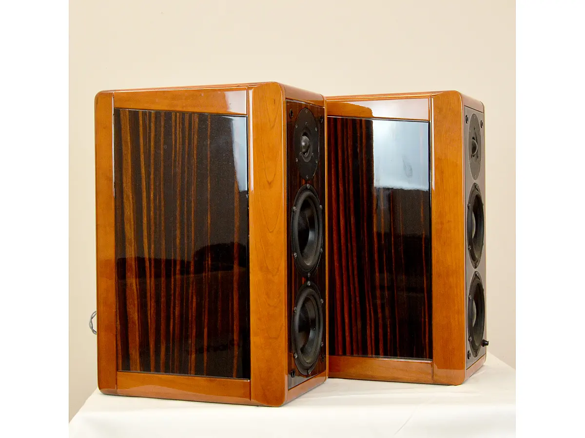Il diffusore Elite della linea Ebano nasce come naturale evoluzione della serie AM Audio da stand e porta con sé l’eredità progettuale delle Carbonio Ebano, reinterpretandola con una cura ancora più estrema. Fin dal primo sguardo rivela una costruzione che privilegia solidità e precisione: il mobile, realizzato con una doppia struttura lignea in ciliegio massello intervallato da multistrato di betulla rivestito in Ebano, viene irrigidito da fissaggi angolari ad alta trazione e da collanti speciali che ne sigillano ogni giuntura, così da eliminare vibrazioni parassite e garantire una risposta impeccabile. All’interno, un foglio di acrilico anallergico smorza le frequenze indesiderate, mentre il cablaggio in rame litz termina direttamente sugli altoparlanti per conservare intatta la purezza del segnale.