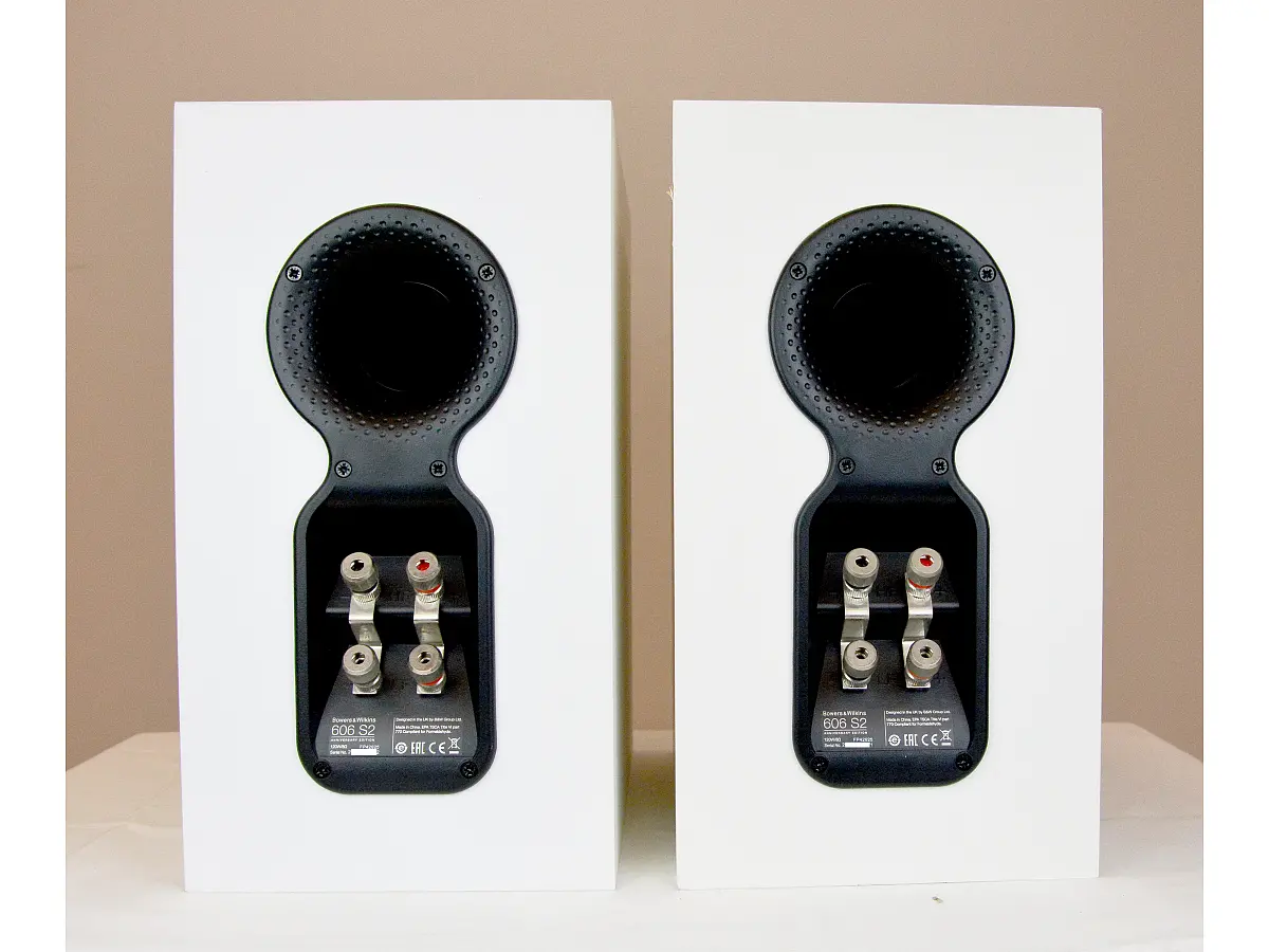 I 606 S2 adottano un design a due vie con cabinet bass‑reflex, in cui il tweeter a cupola in alluminio Decoupled Double Dome è disaccoppiato dal mobile per ridurre le interferenze e garantire alte frequenze dettagliate e naturali, mentre il cono Continuum da 6,5 pollici per i medi e i bassi proviene dalla tecnologia sviluppata nella serie 800 Diamond, offrendo una riproduzione pulita, precisa e priva di colorazioni evidenti nel timbro. Il sistema Flowport posteriore ottimizza il flusso d’aria per una risposta nei bassi nitida e controllata nonostante le dimensioni contenute, permettendo una risposta in frequenza da circa 52 Hz fino a 28 kHz (±3 dB) e un’estensione fino a ‑6 dB tra circa 40 Hz e 33 kHz, rendendo l’ascolto ricco e coinvolgente.
