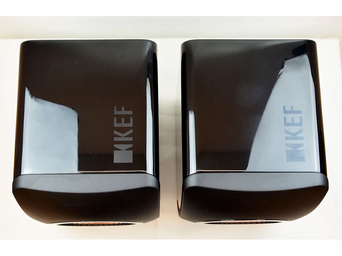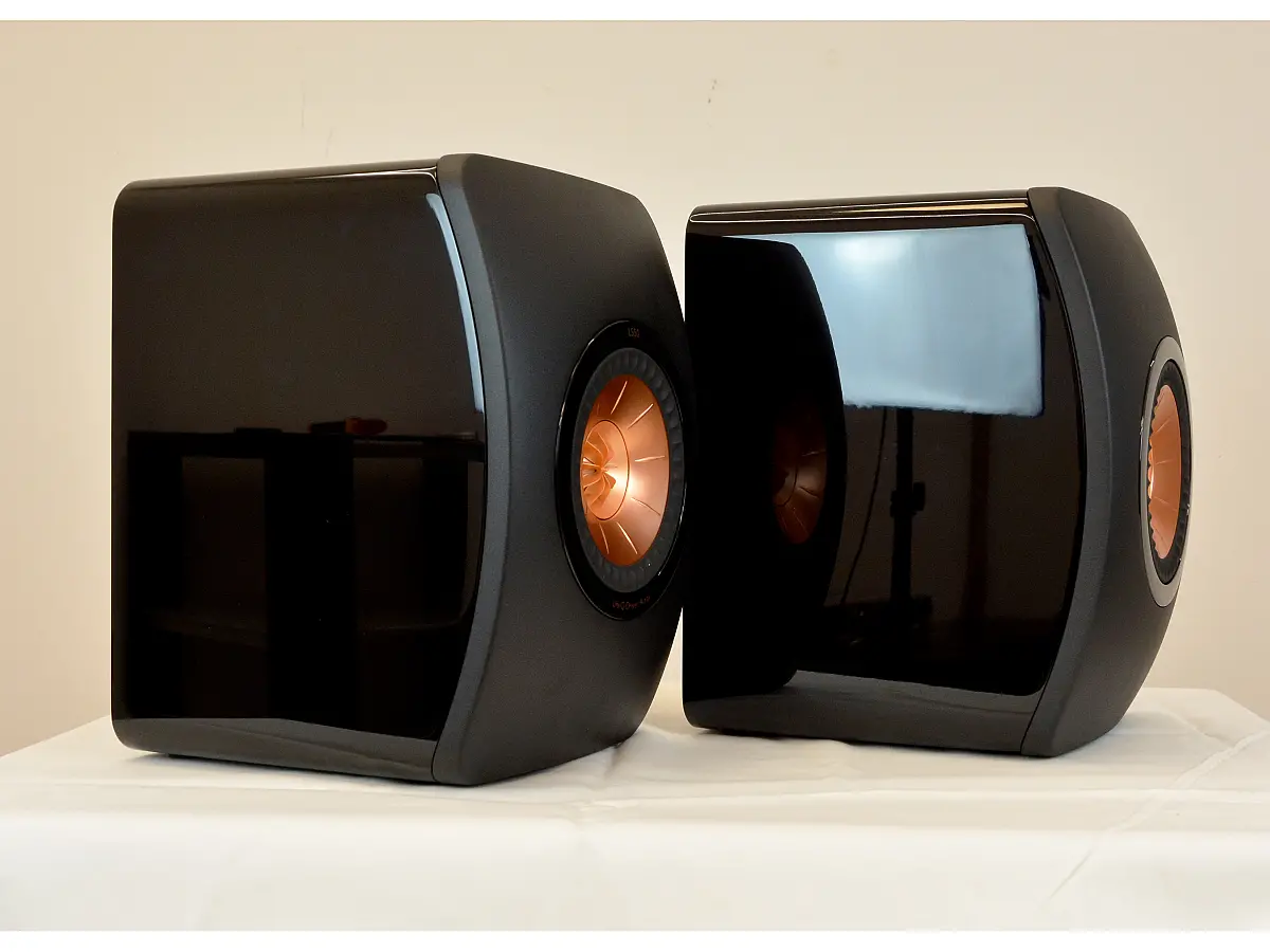 Le KEF LS50 sono diffusori compatti caratterizzati da un design elegante e moderno, concepiti per offrire prestazioni acustiche elevate nonostante le dimensioni contenute. Il frontale, in materiale sintetico opaco e stondato, ospita l’altoparlante Uni-Q color rame, con membrana metallica sia per il piccolo woofer da 13 cm sia per il tweeter centrale. Il mobile in legno è robusto e rinforzato, con una finitura a specchio tipo pianoforte e il logo KEF sul pannello superiore. Sul retro si trova il condotto reflex per l’accordo dei bassi e i connettori tradizionali per il collegamento.