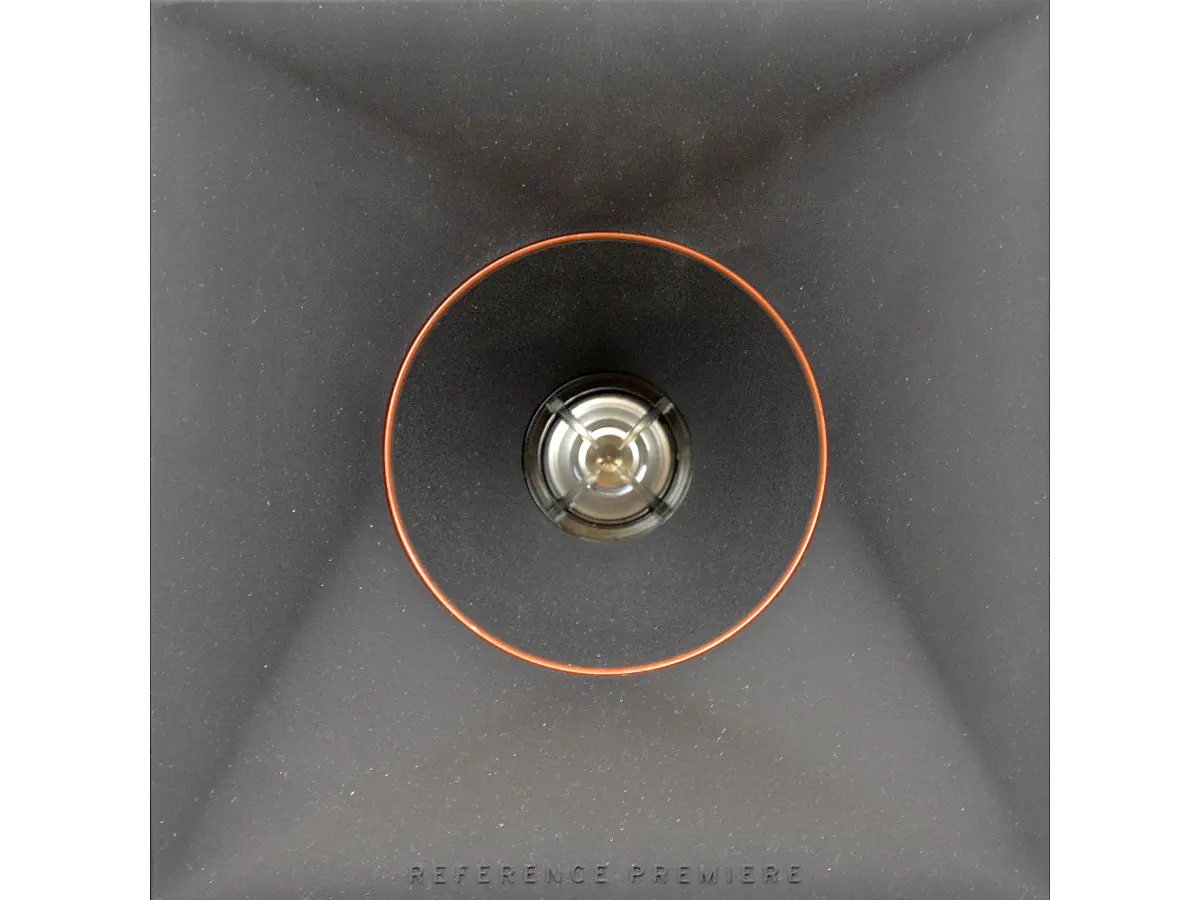 Il woofer Cerametallic da 6,5 pollici, completamente ridisegnato, offre bassi profondi, controllati e dinamici, mantenendo un livello di distorsione molto basso anche ad alti volumi. La cupola parapolvere piatta e la caratteristica colorazione rame rendono il diffusore immediatamente riconoscibile, mentre lo sbocco reflex Tractrix sul pannello posteriore ottimizza il flusso d’aria, migliorando la risposta sulle basse frequenze. La sensibilità elevata e l’impedenza di 8 ohm rendono l’RP-600M un diffusore versatile e facilmente pilotabile, capace di esprimersi al meglio sia in setup hi-fi tradizionali sia in sistemi home theater avanzati.