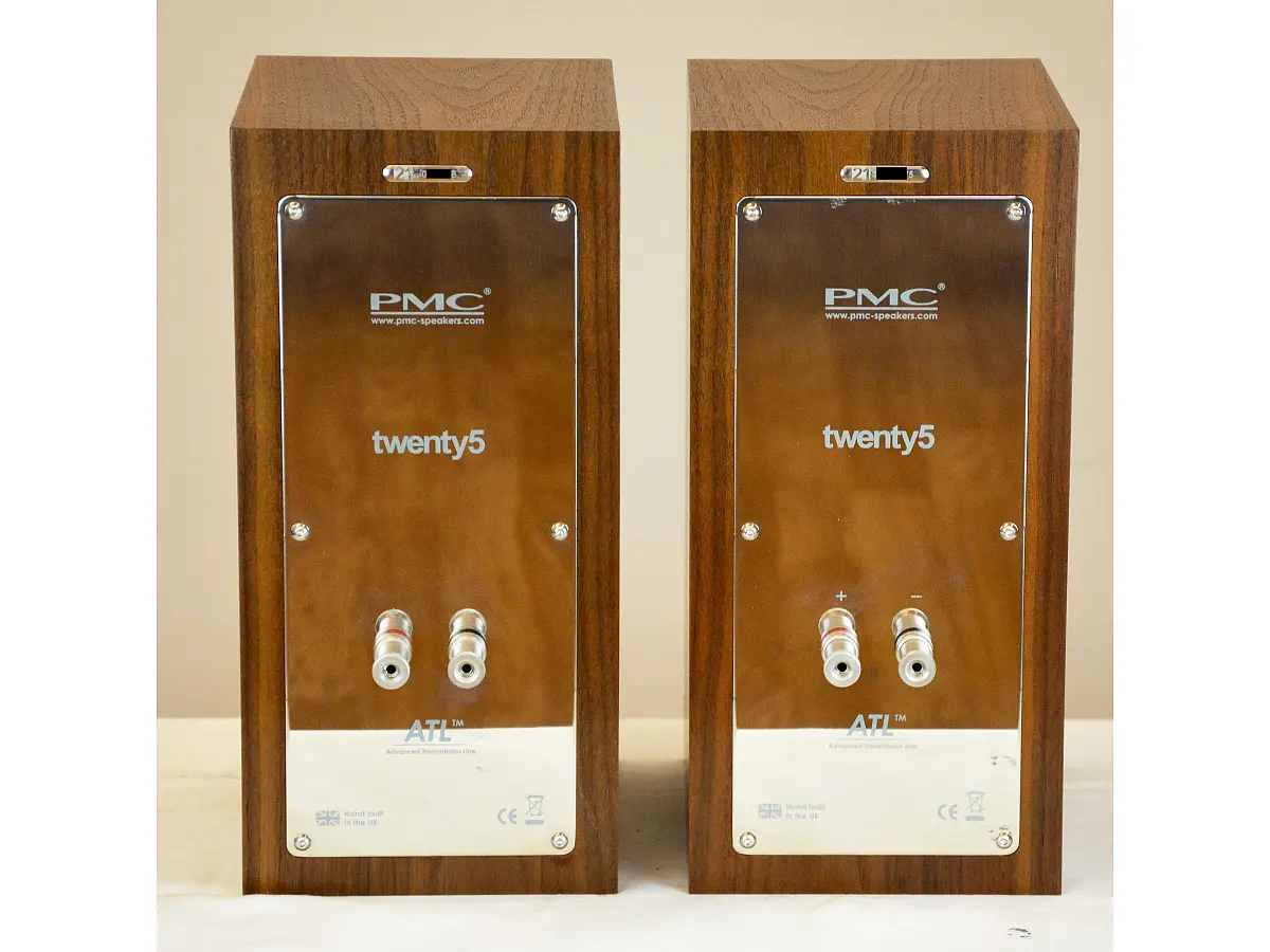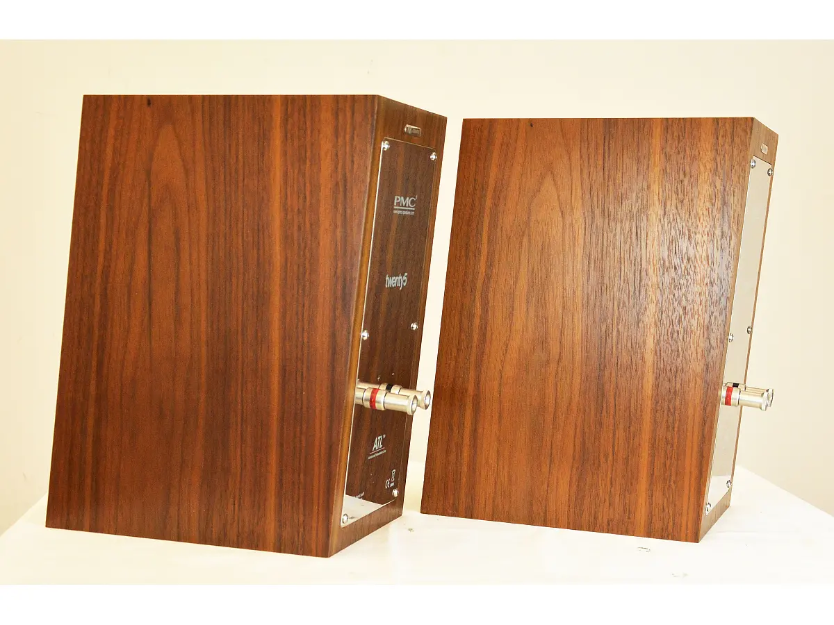 Le PMC twenty5.21 si presentano come diffusori da stand a due vie dal formato compatto ed essenziale, progettati per offrire un’elevata qualità di riproduzione all’interno di un cabinet sottile e leggermente inclinato all’indietro, soluzione che contribuisce alla gestione delle riflessioni e all’ottimizzazione della dispersione sonora. L’estetica rimane funzionale e sobria, con un’impostazione tipica di monitor professionali in scala ridotta, pensata per integrarsi con facilità in ambienti domestici senza rinunciare a un’impronta tecnica evidente.