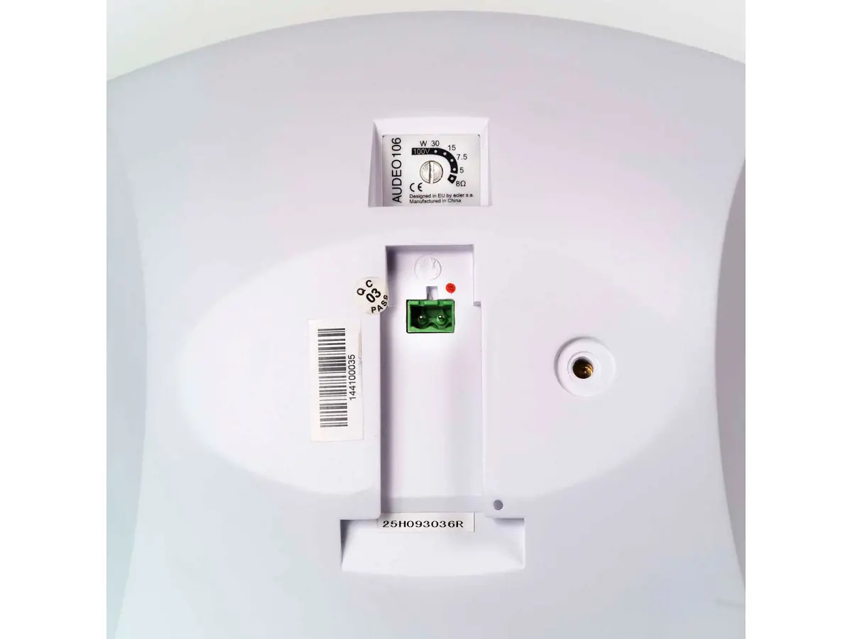 Cabinet in ABS. Protezione IP 54. Potenza Max. 50 W RMS / 100 W musicali su 8 ohm/ 30 / 15 / 10 / 7,5 W tensione costante 100 V. Woofer da 6,5" e Tweeter da 25 mm. Dim. 242 x 242 x 163 mm. Peso 2,3 kg. Staffe per montaggio a corredo.