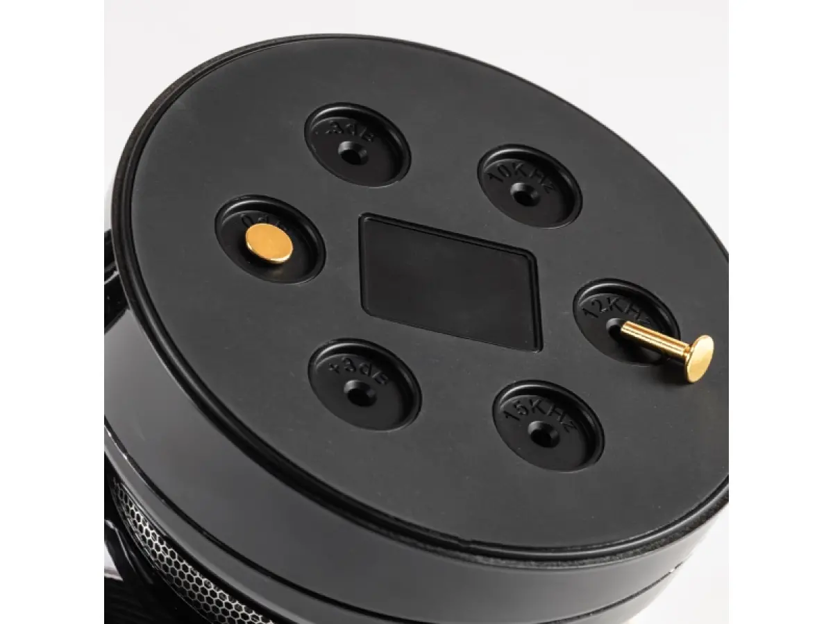 Il design compatto ed elegante si integra armoniosamente in qualsiasi ambiente, impreziosito da una raffinata finitura nera lucida e da connettori cromati che sottolineano la cura artigianale e l’attenzione per i dettagli. Il supporto angolato, ruotabile alla base, consente di posizionare il tweeter non solo su superfici piane, ma anche inclinate, adattandosi perfettamente alla geometria di diffusori come quelli della serie VELA o Concentro. È una soluzione versatile, pensata per rispondere alle esigenze degli appassionati più esigenti.