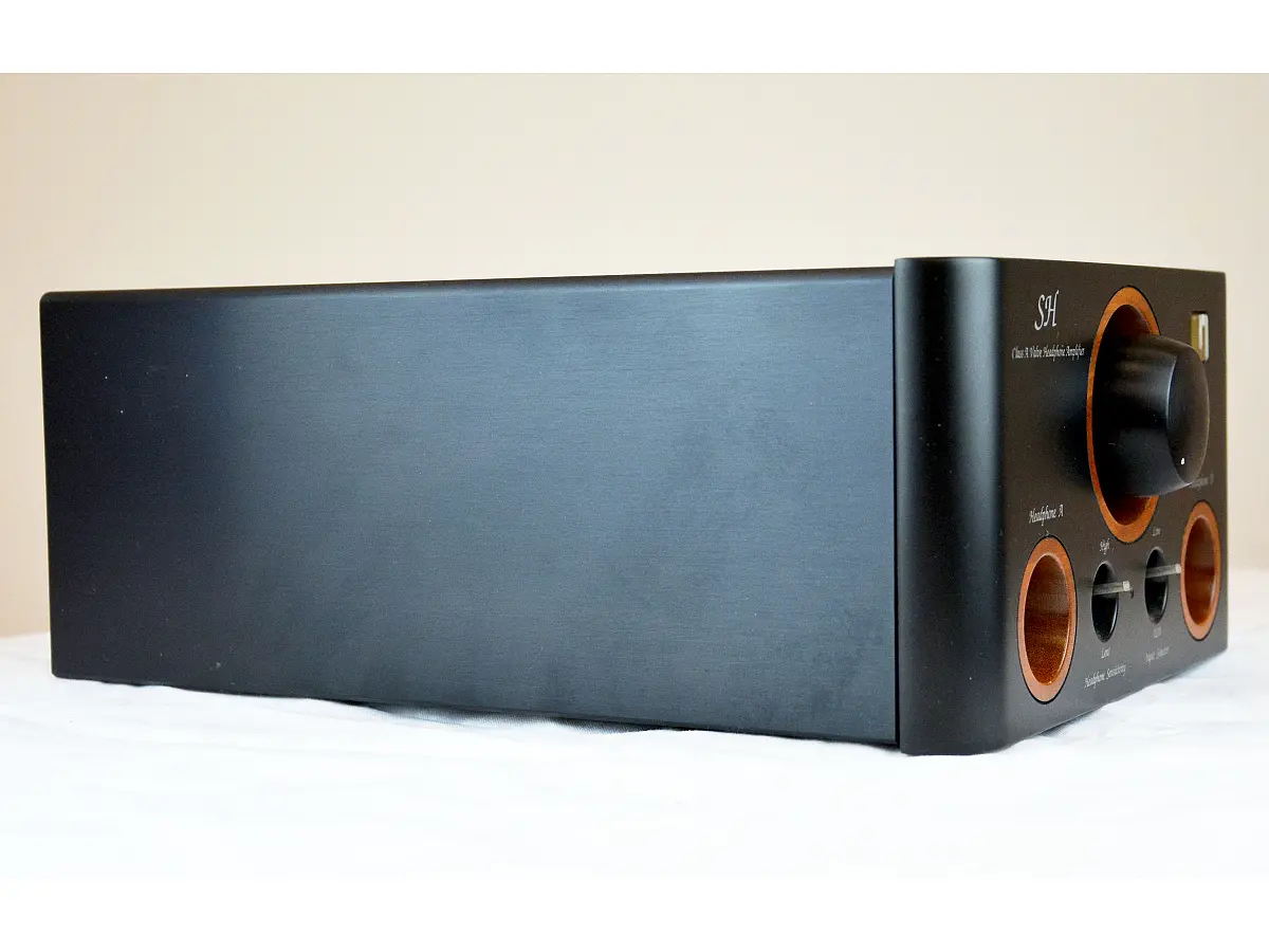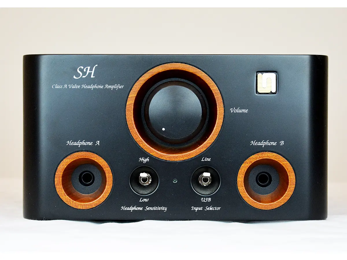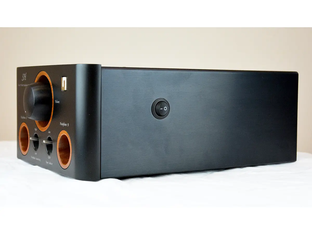 L’SH dispone di due uscite cuffia collegate in parallelo, permettendo di passare facilmente da un ascoltatore all’altro o di condividere l’ascolto con più persone senza perdita di qualità. La connettività include un ingresso RCA sbilanciato per qualsiasi sorgente analogica, e un ingresso USB asincrono compatibile con USB 2.0 Audio Class, che consente di riprodurre file PCM fino a 384 kHz e DSD fino a 128, con risoluzione fino a 32 bit. Il DAC integrato è basato sul chip di ultima generazione ESS Sabre (ESS ES9010K2M) e integra un circuito di eliminazione del jitter, isolamento galvanico tra interfaccia USB e circuito di conversione e clock a basso rumore di fase alimentato da un’area a “tensione pulita”, assicurando una riproduzione precisa, dettagliata e priva di interferenze.