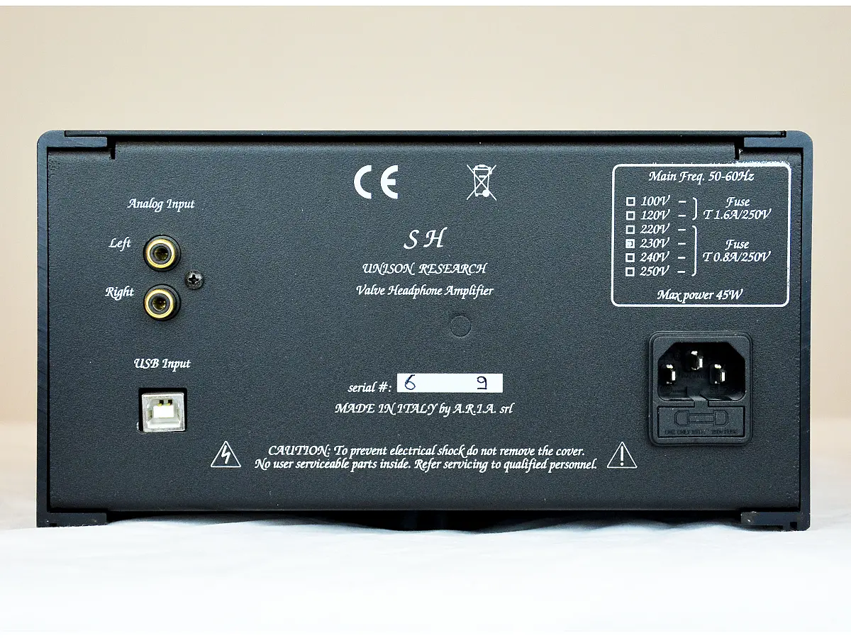 Le prestazioni dell’SH sono caratterizzate da un SNR di 110 dB (a 1 kHz, pesato “A”, 192 kHz) e una distorsione armonica totale (THD+N) dello 0,008% (a 1 kHz, -3 dBFS), valori che confermano la sua capacità di restituire musica con grande trasparenza e dinamica. Grazie alla combinazione tra tecnologia valvolare e DAC moderno, l’Unison Research SH si configura come uno strumento versatile e potente, ideale per chi desidera un ascolto in cuffia di qualità assoluta, sia con sorgenti analogiche sia digitali, in un prodotto interamente artigianale e progettato per durare nel tempo.