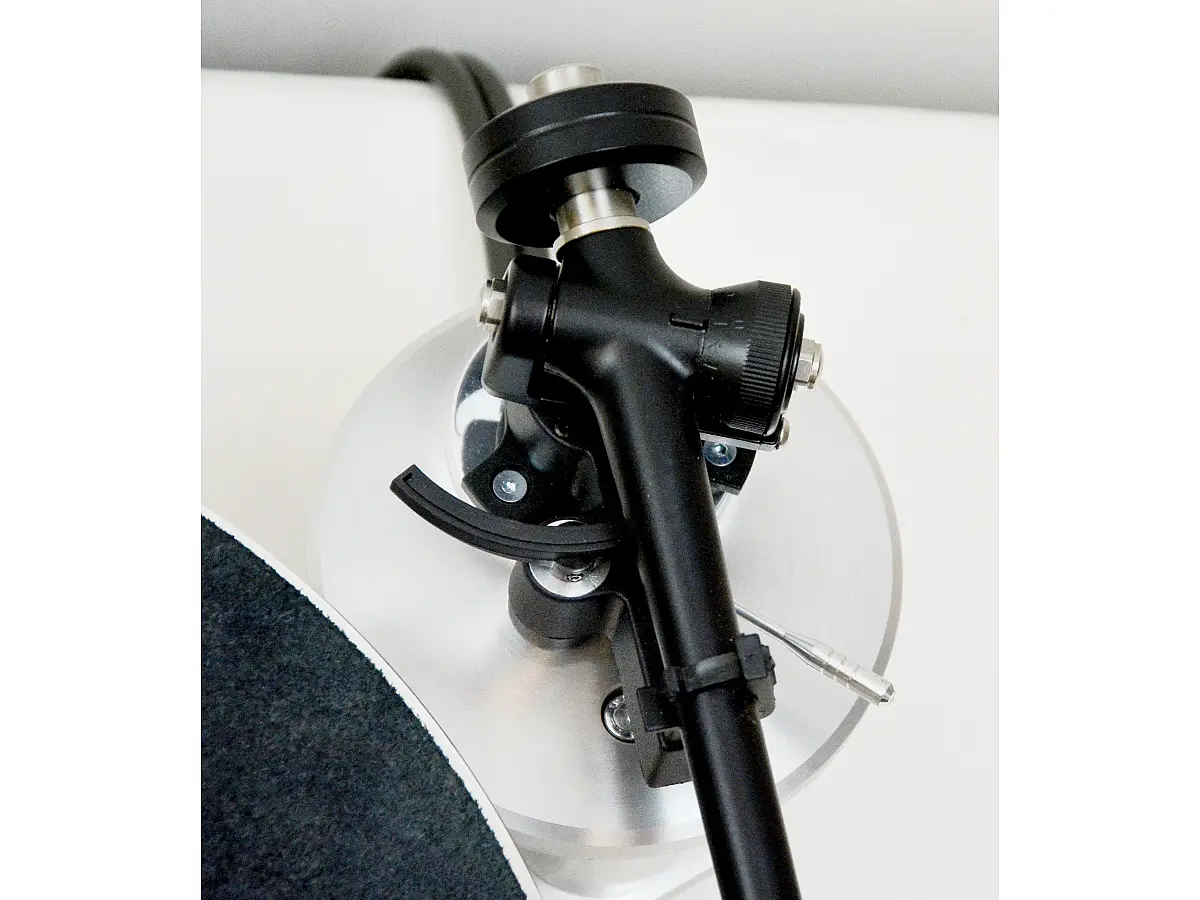 Alla base del modello si trova una delle innovazioni più rilevanti della revisione, cioè l’introduzione di un cuscinetto con perno in rubino, che sostituisce la precedente base in fusione. Il contatto avviene tramite una sfera in ceramica lucidata, inserita con estrema precisione in un alloggiamento perfettamente calibrato, una soluzione che contribuisce a ridurre gli attriti e a garantire una rotazione più fluida e controllata del piatto, con effetti positivi sulla stabilità e sulla pulizia della riproduzione sonora.