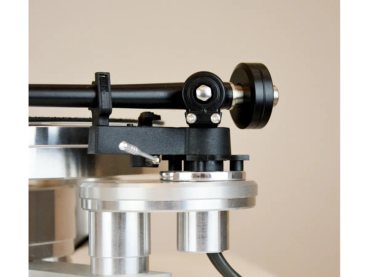 Il sistema di trazione resta basato su un motore sincrono di derivazione Berger, mentre il braccio adottato deriva dalla piattaforma Rega, opportunamente modificata eliminando il tradizionale sistema a molla per la regolazione della forza di lettura. Il piatto in alluminio massiccio, ulteriormente irrobustito, viene completato da un tappetino in pelle e da un disco in plexiglass che contribuiscono a migliorare il contatto con il vinile e la coerenza della rotazione.