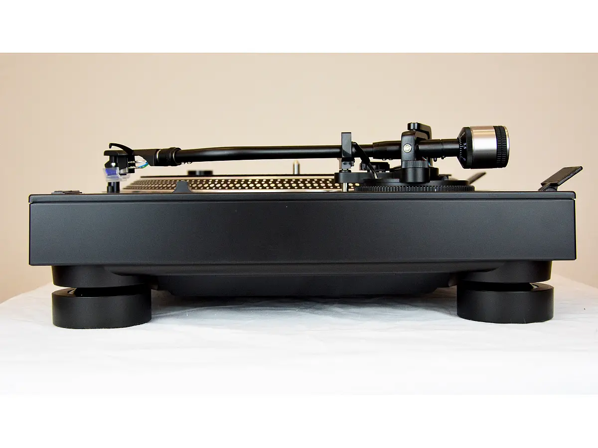 Il giradischi professionale AT-LP140XP di Audio-Technica è un modello completamente manuale progettato per offrire prestazioni di livello DJ e un’esperienza di ascolto del vinile di altissima qualità. Dotato di un motore a trazione diretta ad alta coppia, garantisce una rotazione stabile e precisa dei dischi a 33⅓, 45 e 78 giri al minuto, mentre il piatto in alluminio pressofuso, anti risonanza e smorzato in massa, contribuisce a ridurre al minimo le vibrazioni indesiderate e ad assicurare una riproduzione fedele del suono. Il braccio a S, bilanciato e regolabile in altezza, dispone di controllo antiskating dinamico e forza di tracciamento regolabile, permettendo una calibrazione accurata della testina in base alle esigenze dell’ascoltatore o del DJ.