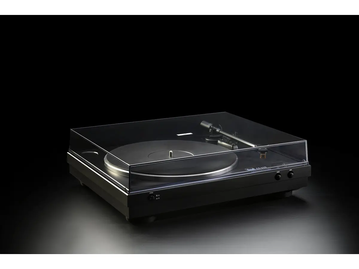 Il braccio dritto, bilanciato staticamente, può funzionare in modalità completamente automatica o manuale, senza necessità di ulteriori regolazioni, ed è già equipaggiato con la testina Audio-Technica AT91, pronta all’uso. La trasmissione a cinghia, azionata da un motore DC supportato da supporti in gomma, garantisce una rotazione stabile e silenziosa, riducendo al minimo wow & flutter, per un ascolto rilassato a 33 o 45 giri.