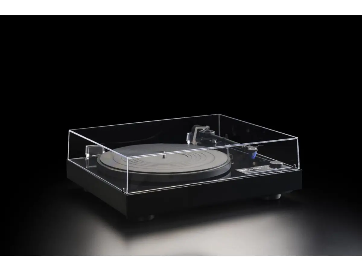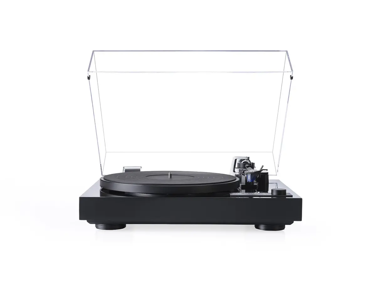 La trazione diretta è affidata a un motore coreless, privo di vibrazioni e doppiamente schermato per eliminare interferenze magnetiche, mentre il piatto in alluminio pressofuso, pesante e preciso, è completato da un tappetino in gomma per smorzare ulteriormente le risonanze. Il plinto è disponibile in vinile nero, laccato lucido nero o impiallacciatura in vero legno di noce, mentre i piedini con assorbitori in elastomero contribuiscono a una stabilità ottimale, valorizzando ogni dettaglio sonoro del vinile.