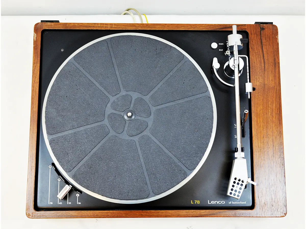Il Lenco L 78 è un giradischi semi-automatico di produzione svizzera realizzato tra il 1974 e il 1976, apprezzato dai collezionisti per la sua versatilità e la solidità costruttiva. Progettato per chi desidera un giradischi vintage capace di riprodurre vinili di ogni epoca, offre quattro velocità di rotazione – 16, 33 ⅓, 45 e 78 giri – con la possibilità di regolare in modo continuo la velocità tra 16 e 78 RPM, una caratteristica ideale per chi vuole ascoltare dischi rari o particolari con la massima fedeltà.