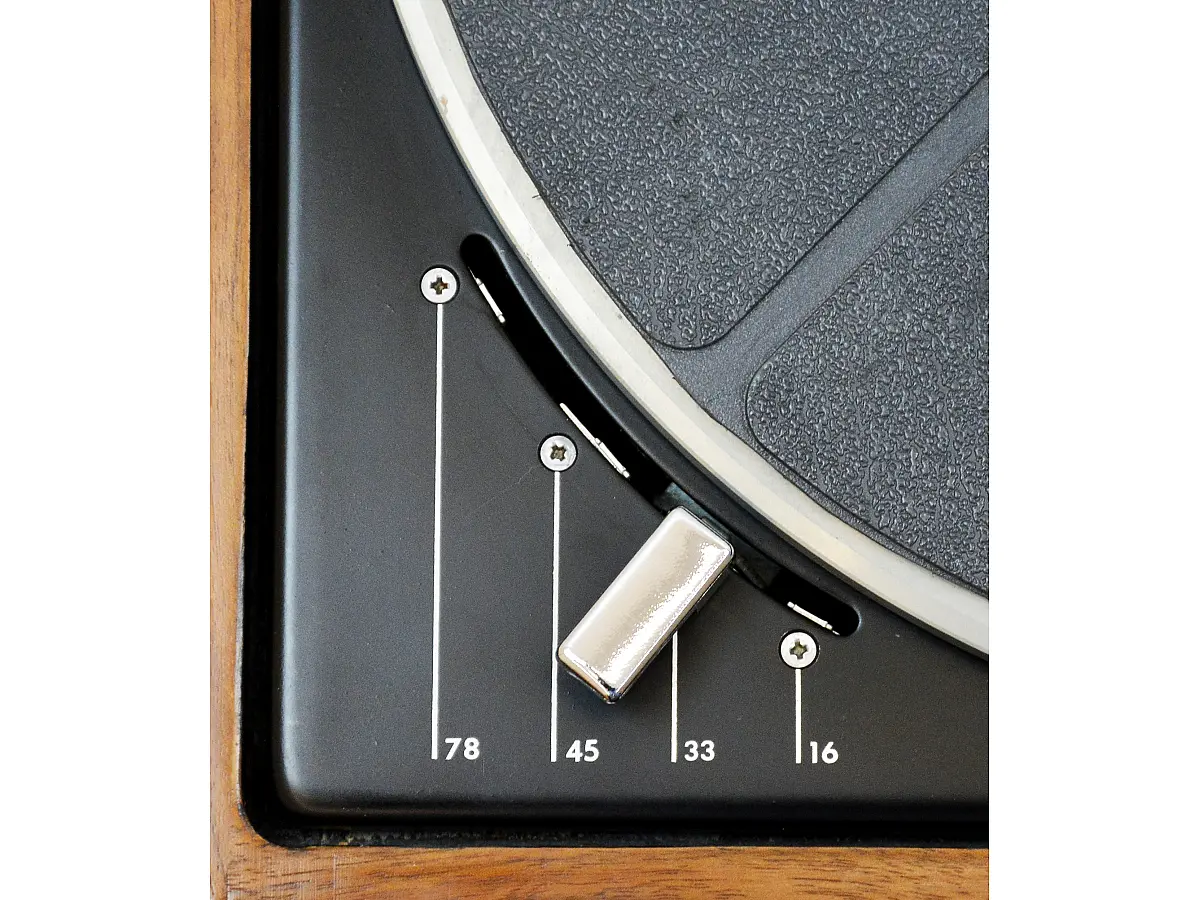 - Velocità: 16, 33 ⅓, 45, 78 rpm; regolazione continua variabile 16–78 rpm