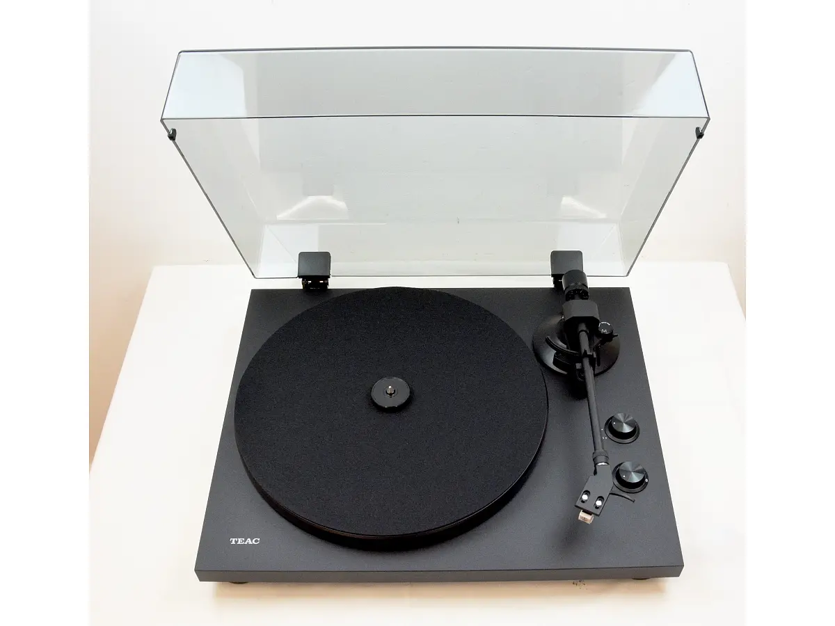 La trazione a cinghia è stata scelta per ridurre al minimo vibrazioni e rumori meccanici, garantendo un suono più morbido, preciso e naturale rispetto ai giradischi a trazione diretta tipicamente pensati per l’uso DJ. Il piatto in alluminio pressofuso fornisce una base solida e stabile per la rotazione del disco, mentre il sistema di anti-skating contribuisce a un tracciamento corretto del solco, migliorando la qualità di lettura e preservando i vinili nel tempo. Il funzionamento a due velocità consente la riproduzione sia dei dischi a 33⅓ che a 45 giri.