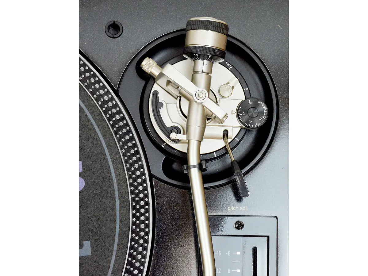 - Sezione braccio: tipo universale; lunghezza effettiva 230 mm; regolazione altezza 0-6 mm; overhang 15 mm; massa efficace 12 g (senza testina)