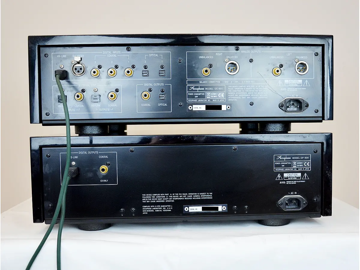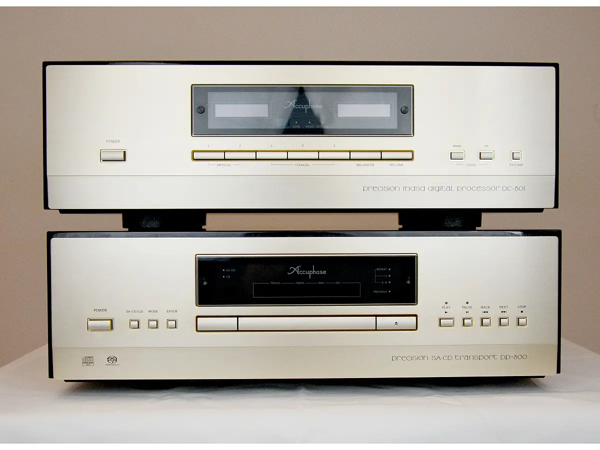 Il trasporto utilizza un servo digitale controllato da DSP dedicato, in combinazione con una testina a singola lente e doppio laser montata su un meccanismo ad accesso rapido, per garantire una lettura precisa e affidabile. Questo consente non solo una riproduzione ottimale dei SA-CD, ma anche l’estrazione di un segnale digitale di altissima qualità dai CD convenzionali. L’uscita digitale per entrambi i formati è fornita tramite l’interfaccia esclusiva Accuphase HS-Link (connettore RJ-45), mentre l’uscita coaxiale dedicata permette la connessione dei CD tradizionali. Il cavo HS-Link fornito in dotazione può essere utilizzato per collegare il DP-800 al preamplificatore digitale DC-801 o ad altri componenti compatibili.