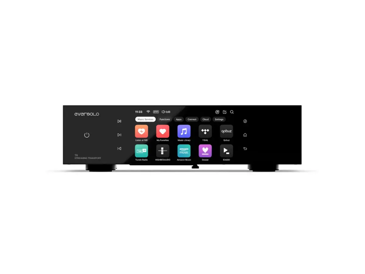 Il controllo avviene tramite l’app Eversolo Control, disponibile per Android, iOS e MacBook serie M, con interazione in tempo reale, completata da un telecomando dual-mode Bluetooth/IR che unisce praticità e affidabilità. L’Eversolo T8 si propone così non solo come un semplice ponte tra sorgente digitale e DAC, ma come un centro digitale capace di elevare la qualità della riproduzione, offrendo precisione, versatilità e affidabilità sia in sistemi domestici di alto livello sia in contesti professionali.