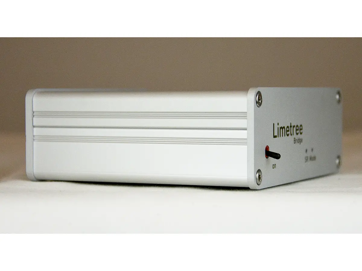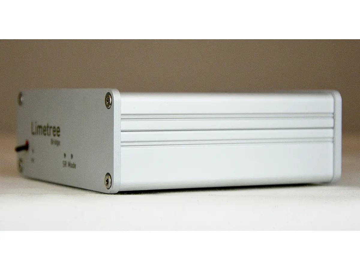 La circuiteria del Limetree BRIDGE II è ottimizzata per garantire la massima qualità del segnale attorno alla potente piattaforma di streaming. Tutti i file musicali vengono risincronizzati utilizzando un clock femto ad alta precisione e un convertitore di frequenza di campionamento di livello da studio, eliminando il jitter, una delle principali cause di degrado dell’audio digitale. Il segnale digitale particolarmente stabile del BRIDGE II può persino migliorare percepibilmente la qualità sonora di molti convertitori D/A più datati.
