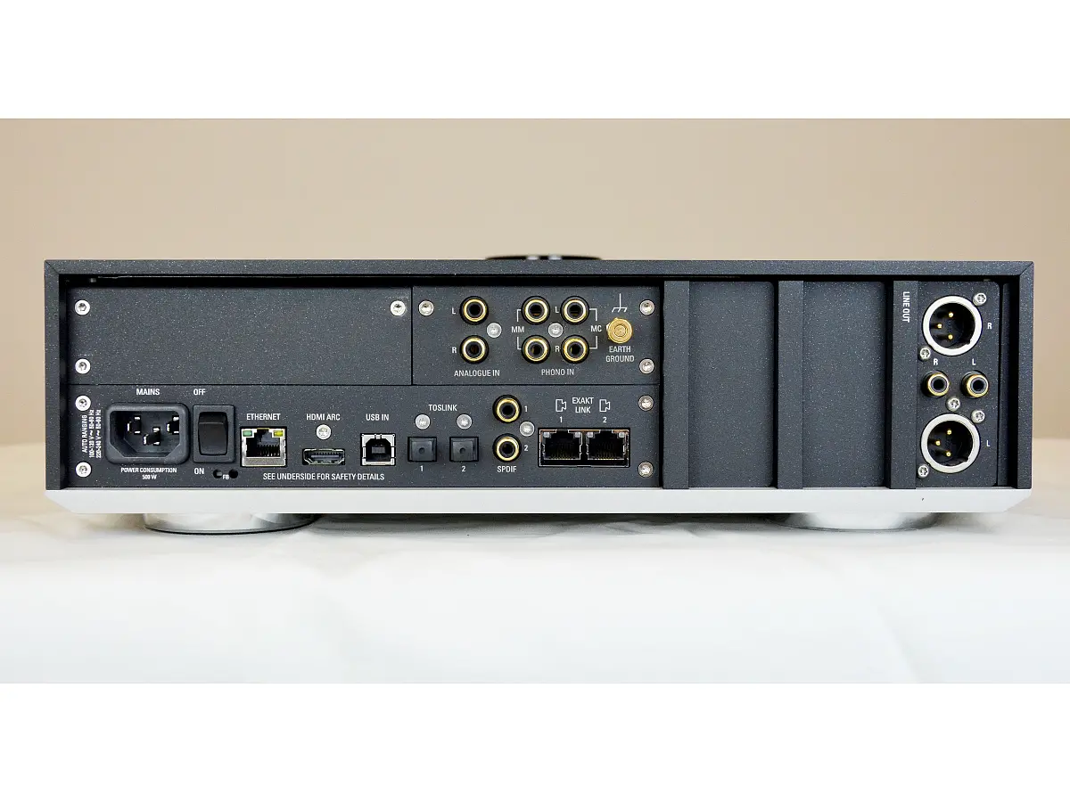 Con l’integrazione dei moduli di amplificazione dedicati, Selekt DSM si trasforma in un sistema all-in-one di altissimo livello, capace di unire eleganza formale e prestazioni audiofile. La struttura modulare consente configurazioni avanzate come bi-amplificazione, tri-amplificazione e persino l’implementazione della tecnologia Exakt per pilotare determinati diffusori compatibili, tutto racchiuso in un unico chassis compatto.