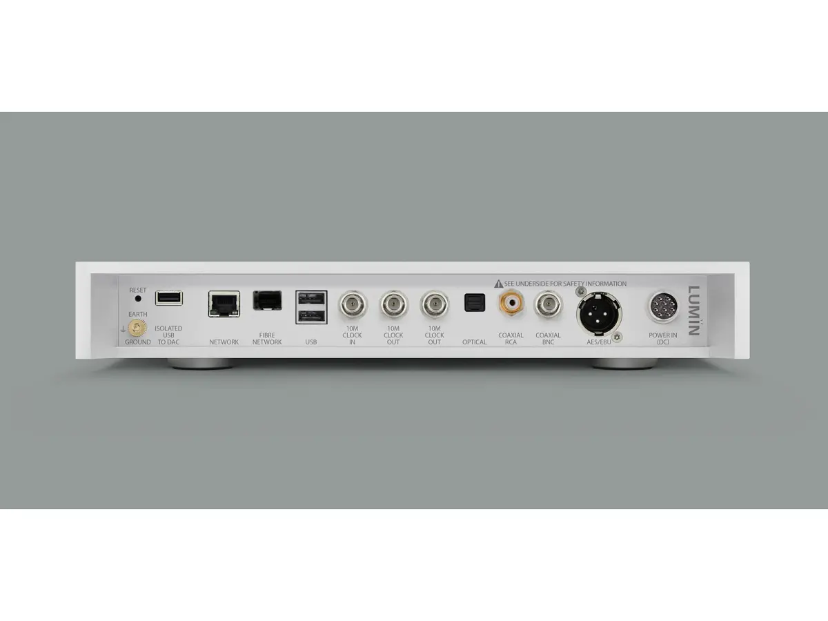 Come da tradizione LUMIN, la connettività di rete è tra le più avanzate: la porta in fibra ottica isola completamente il sistema dal rumore digitale proveniente dalla rete, mentre l’interfaccia Dual Network con switch integrato offre la massima flessibilità di configurazione. La gestione del volume avviene attraverso il sistema Leedh Processing, un algoritmo proprietario di regolazione digitale lossless che mantiene intatta la risoluzione del segnale anche a livelli di ascolto più bassi.